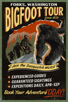 Forks, Washington - Vintage Sign - Bigfoot Tours
