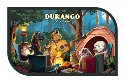 Durango, Colorado - Painterly - Pack Life - Dogs Around Campfire - Contour