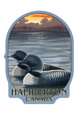 Haliburton, Canada - Loons at Sunset - Contour