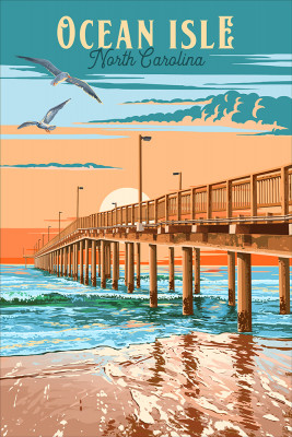 Ocean Isle, North Carolina - Painterly - Pier