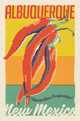 Albuquerque, New Mexico - Woodblock City Series - Chili Peppers