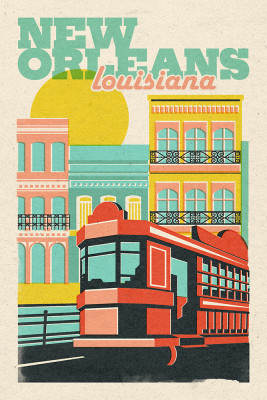 New Orleans, Louisiana - Woodblock City Series - French Quarter