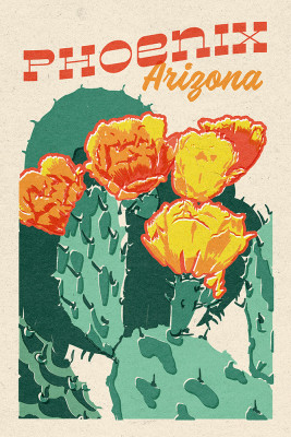 Phoenix, Arizona - Woodblock City Series - Cactus Blooms