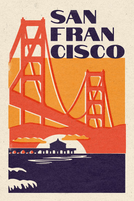 San Francisco, California - Woodblock City Series - Golden Gate