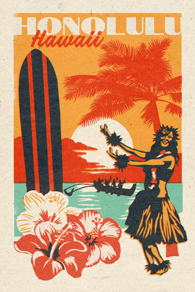Honolulu, Hawaii - Woodblock City Series - Hula Dancer