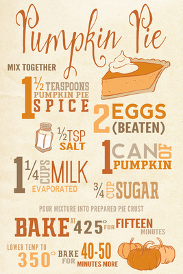 Pumpkin Pie Recipe - Typography - Lantern Press Artwork