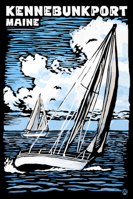 Kennebunkport, Maine - Sailboat - Scratchboard - Lantern Press Artwork