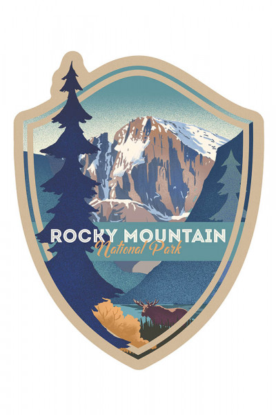 Rocky Mountain National Park, Colorado - Moose & Lake - Lithograph - Contour - Lantern Press Artwork