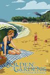 Baltimore, Maryland - Skyline & Sunburst Screenprint Style - Lantern Press Artwork