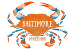 Baltimore, Maryland - Blue Crab - Blue & Orange Watercolor - Contour